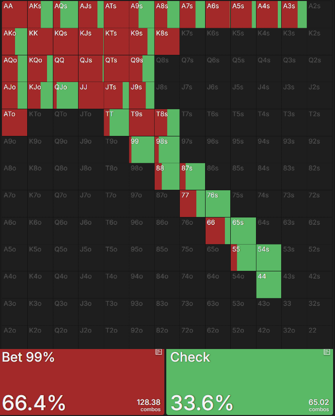 它对范围内的大部分诈唬牌有少量的摊牌率,这些通常是Kx、Qx、Jx等。