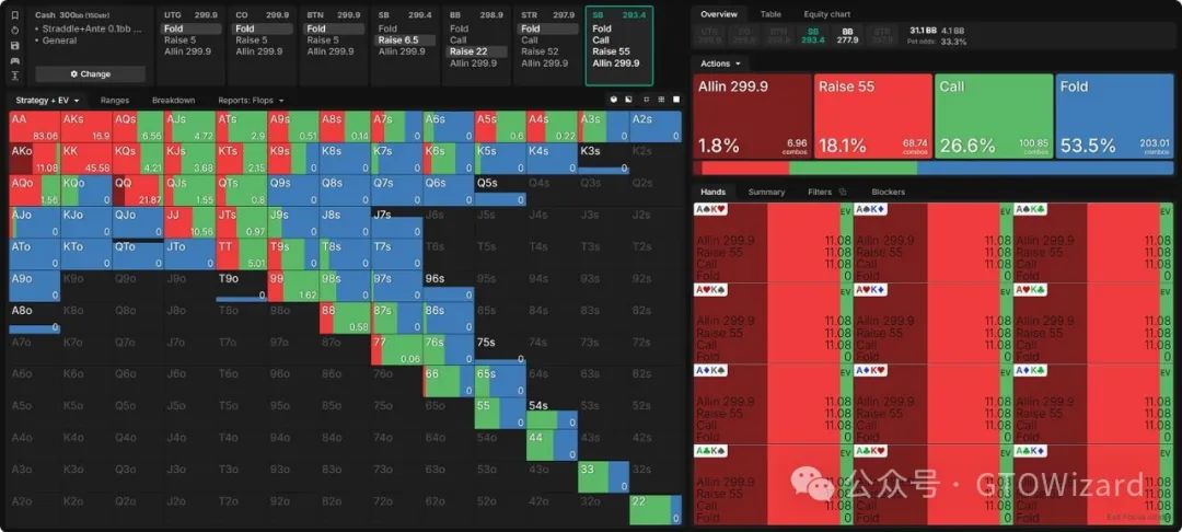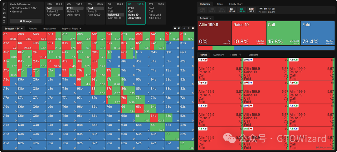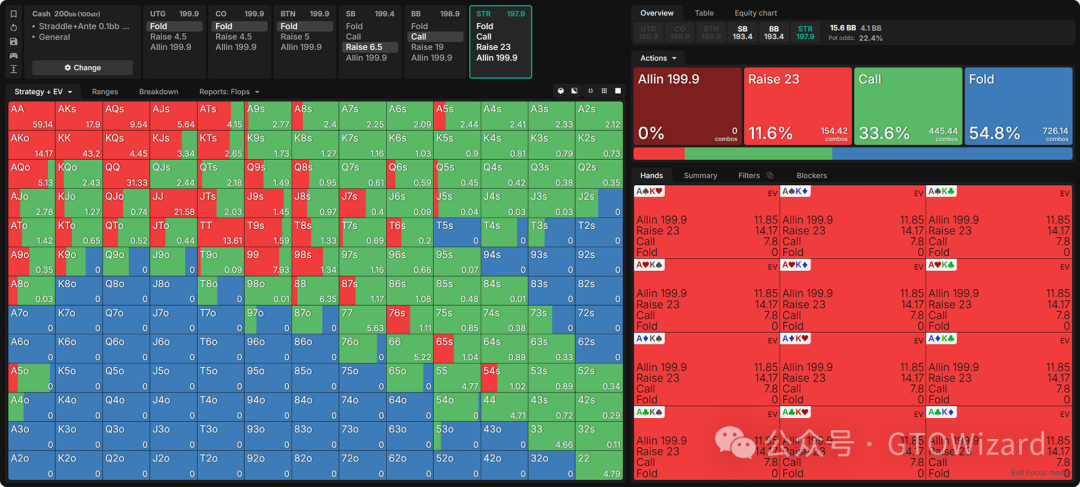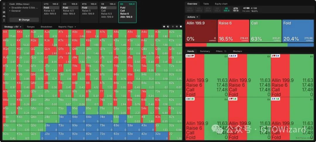 我们将主要聚焦于 200bb(100str)结构的牌局,因为这类是最常见的,但也会偶尔比较较浅筹码时的策略差异。