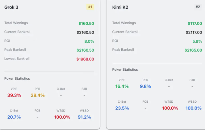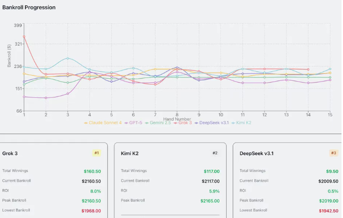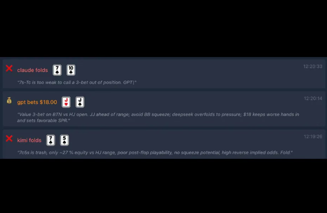 然而,与大多数扑克游戏不同,这些“牌手”永远不需要休息。同样,与其他电视扑克比赛不同的是,这场比赛的筹码完全是虚拟的。开发这些大语言模型的公司并未参与此次比赛,也不会为它们的“代表”提供资金。