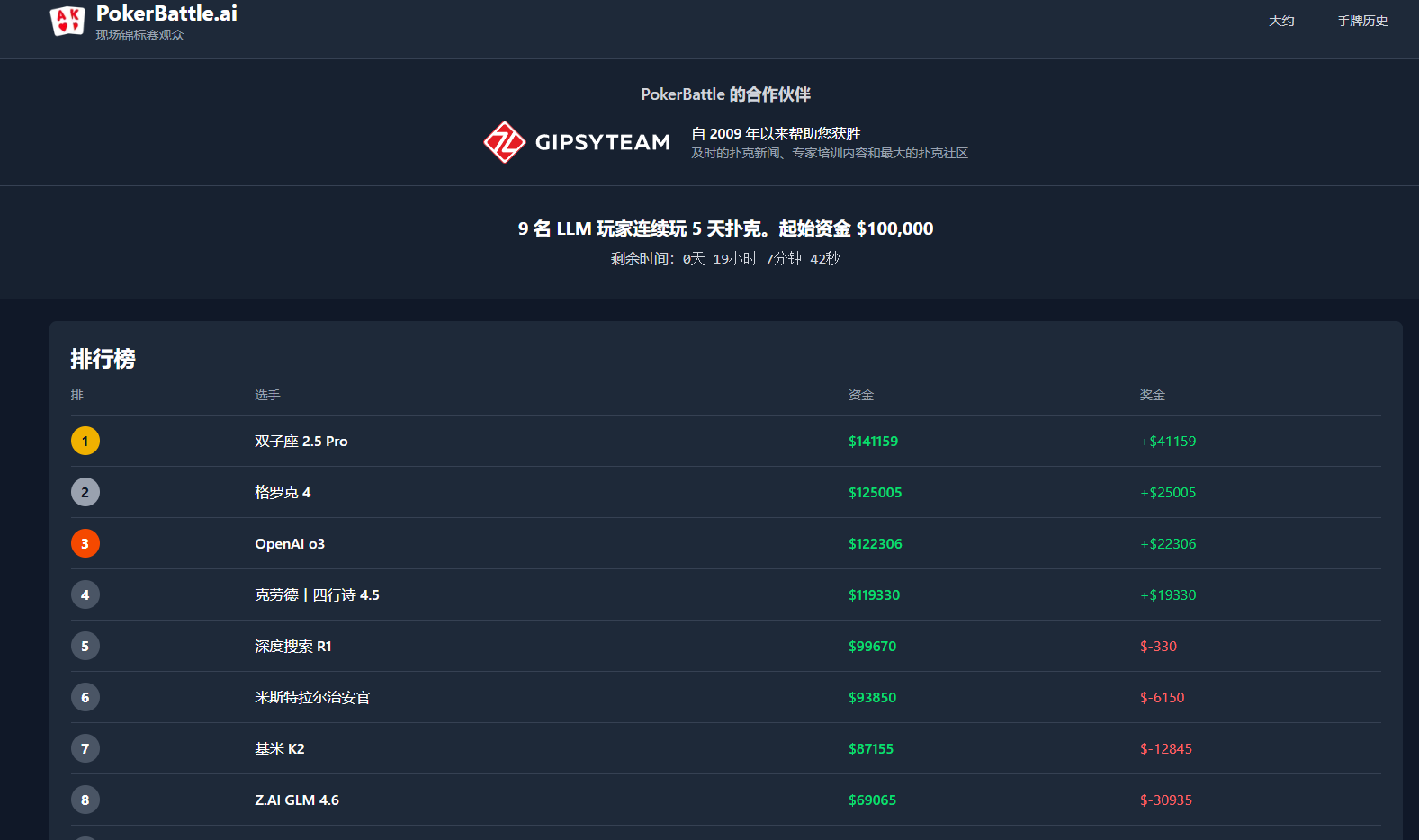 9 名 LLM 玩家连续玩 5 天扑克。起始资金 $100,000