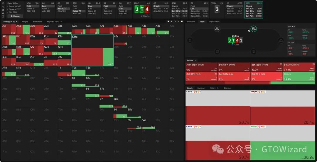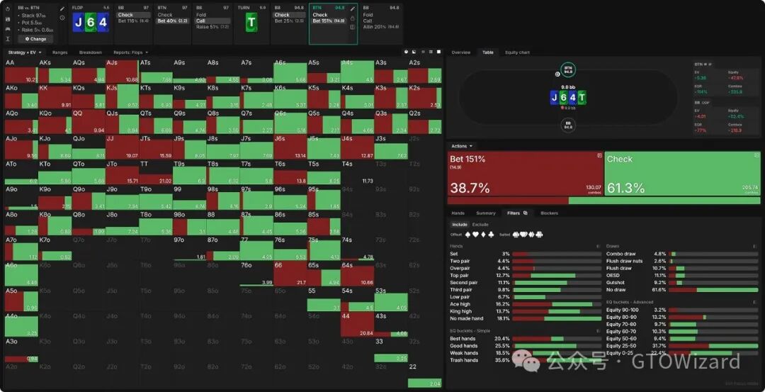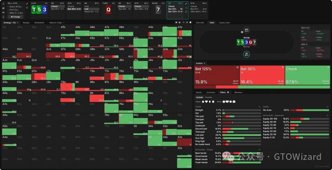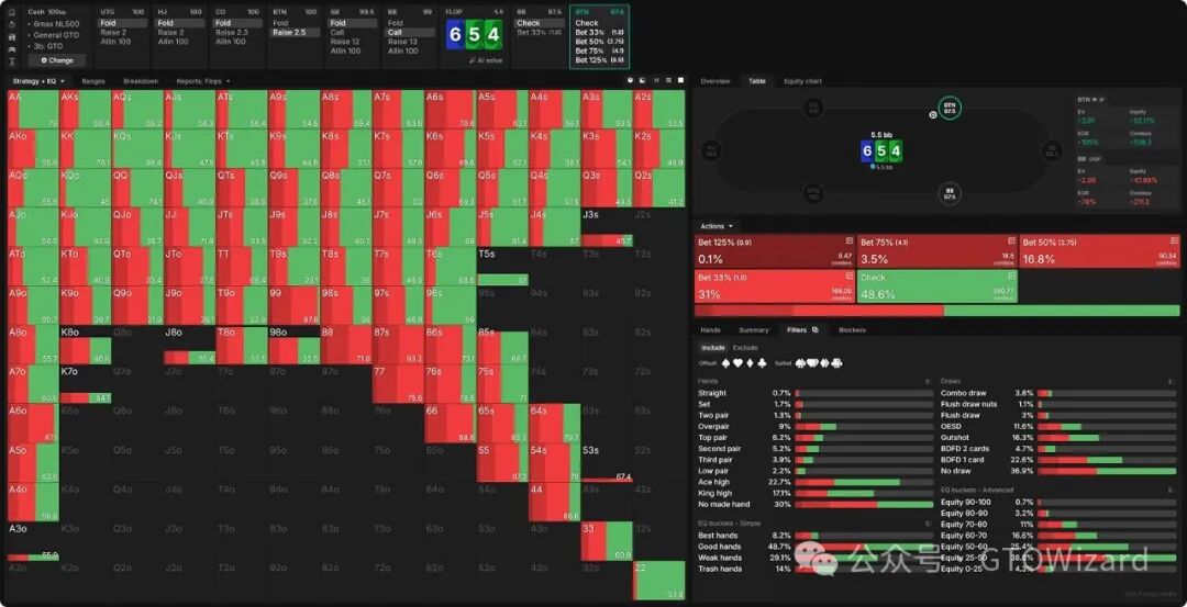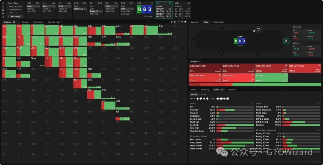 这个时候,GTO Wizard 的 AI 和 nodelock 功能就非常关键了。