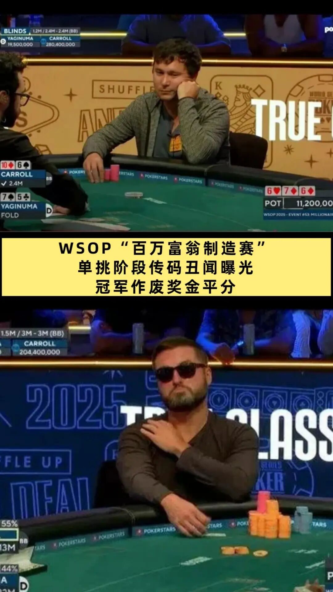 WSOP百万富翁制造赛单挑阶段惊现传码丑闻最终冠军作废奖金平分;