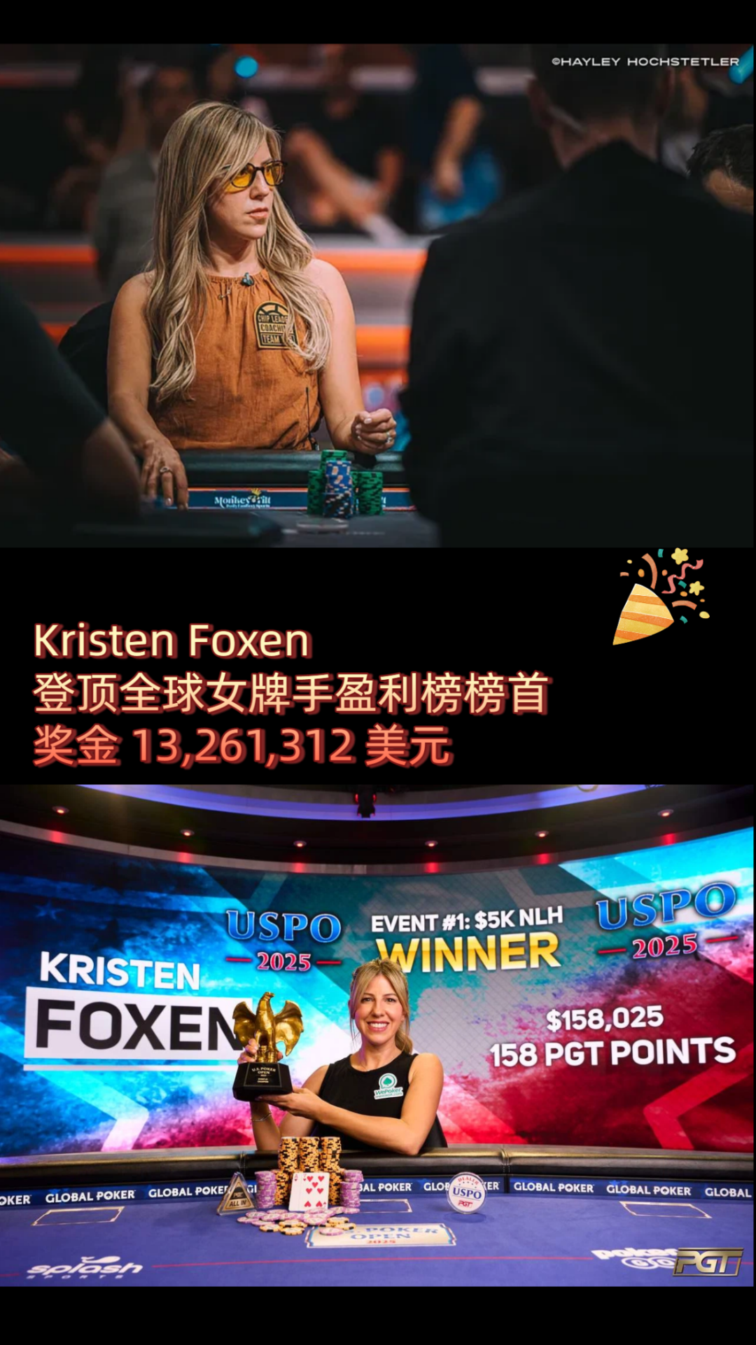 这一年,Kristen Foxen以超过1100万美元的总奖金,正式超越“女鲨鱼”Vanessa Selbst,成为史上奖金最高的女性牌手;