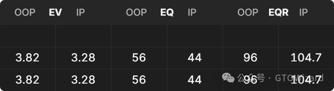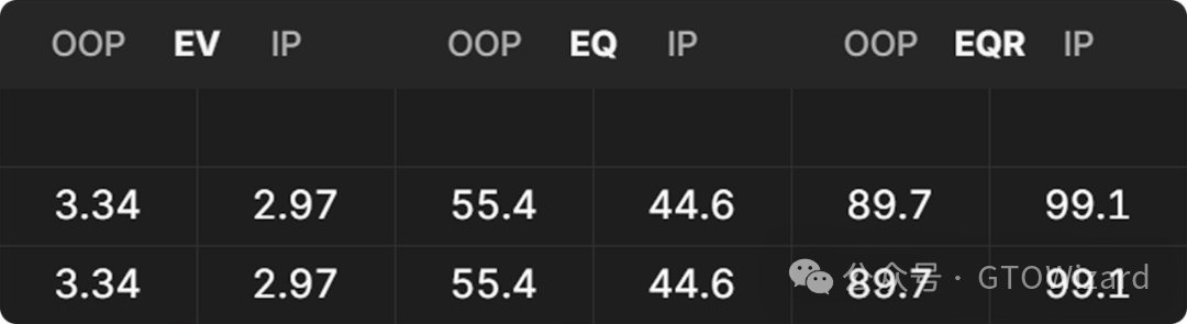 在同一个节点中,UTG 和 BTN 的权益实现率在Chip EV 下是 96%和 104.7%,而在 ICM 示例中是 89.7%和 99.1%。从Chip EV 到 ICM: