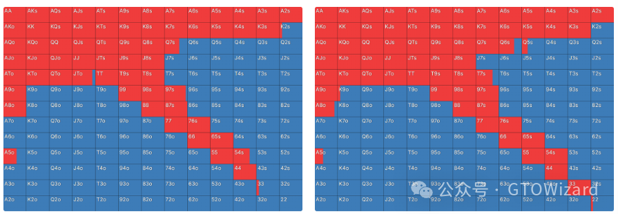 注意,如果你确实想比较相同的范围,可以在生成输出之前,在 AI 解算设置的手牌详情部分修改范围。记住这可能会影响报告输出的准确性,因为修改翻前输入会改变翻后策略,可能产生不正确的启发式结论