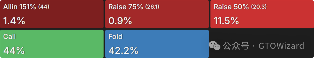 下一步,我们可以设置一个场景,让 BTN 位面对 UTG+1 的全压,然后比较两个解算结果中的跟注频率