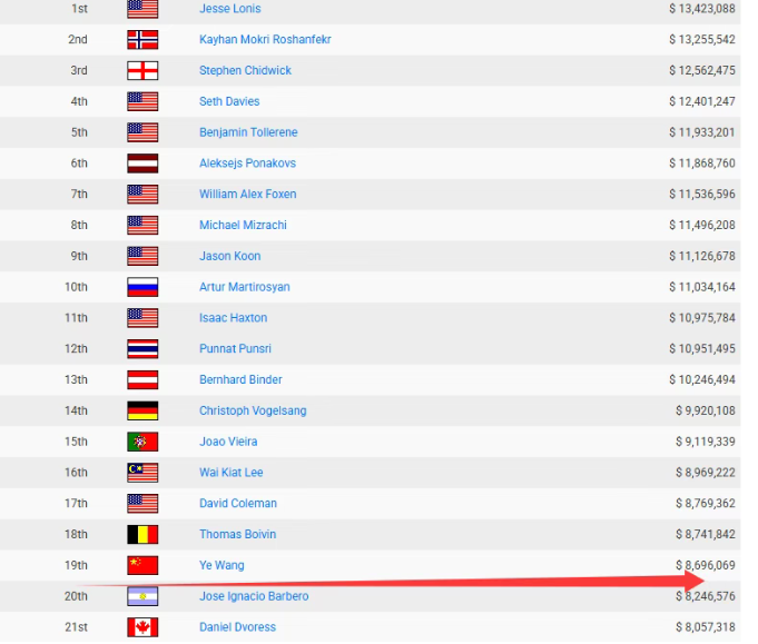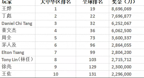 这些成绩不仅让他登顶大中华区奖金榜第一,还挤入了全球前20。