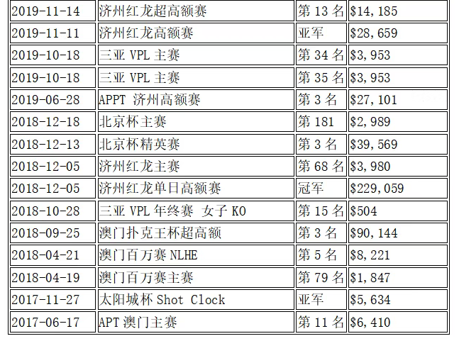 在中国地区总奖金榜排名第6,全球排名第178。
