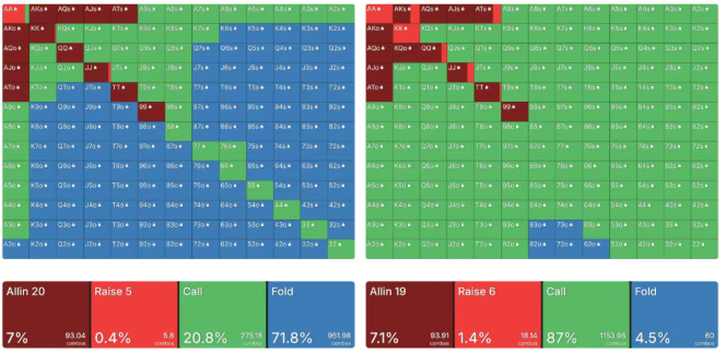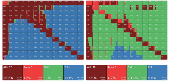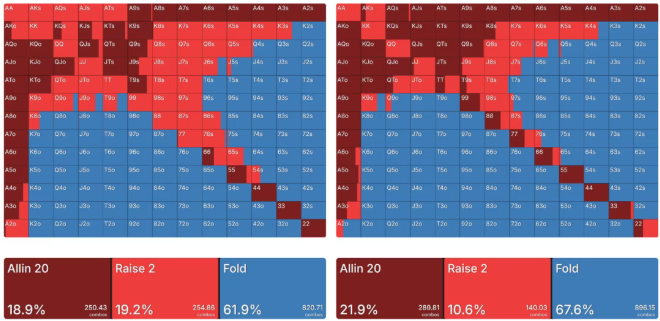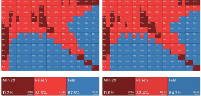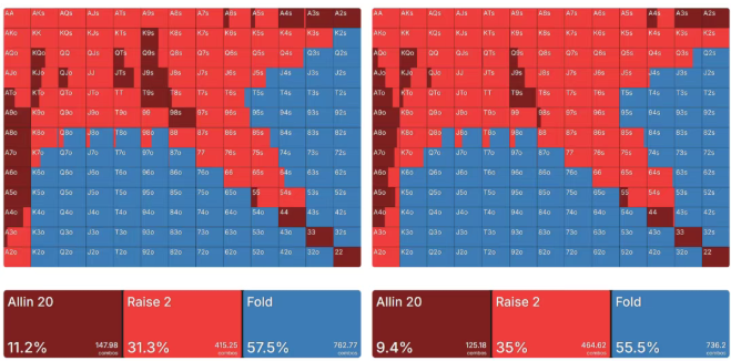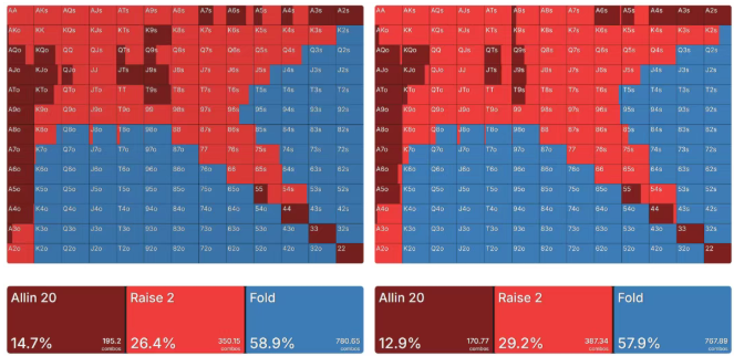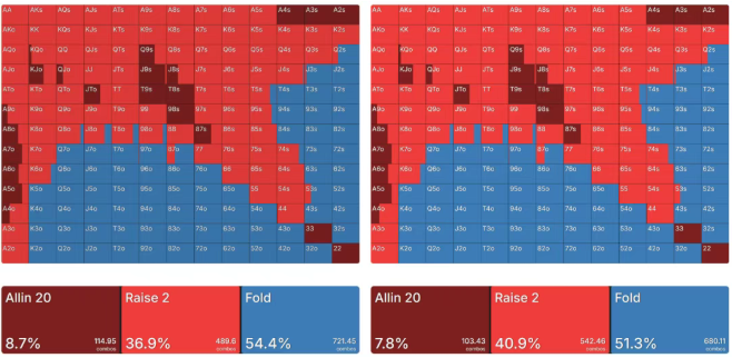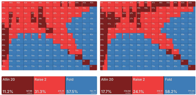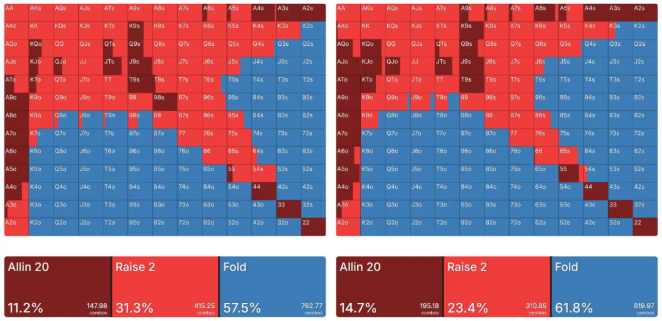 在继续之前,让我们快速看一下 SB(左)和 BB(右)对 BTN 公开加注的应对方式:
