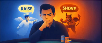 当我们全压时,以下是小盲玩家的应对策略(大盲也相似):