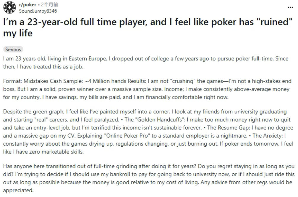 最后回到帖子那句原话:“扑克毁了我的人生”…