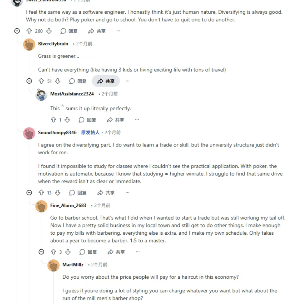 但Reddit上大量案例说明:盈利只能解决“钱的问题”,解决不了“人生结构问题”