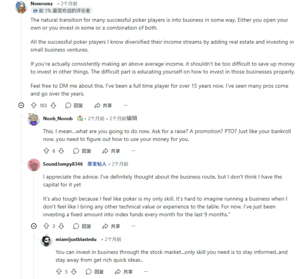 这篇帖子下面的高赞评论,其实给出了非常有价值的补充信息。把它们抽象出来,你会发现职业扑克的成本远不只是输赢。