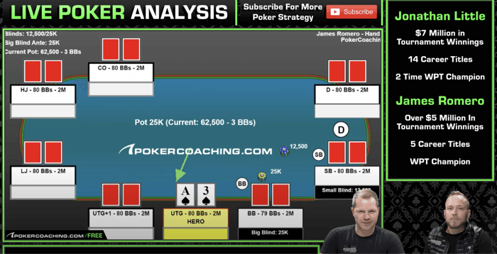James说,他不认为他的牌是一手良好的下大注诈唬牌,因为它有一定的摊牌价值。