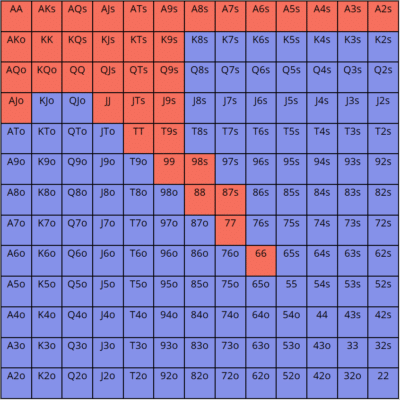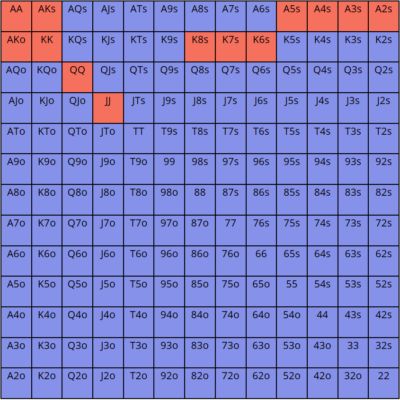 一个好牌手的小盲位置3bet范围看起来是这样: