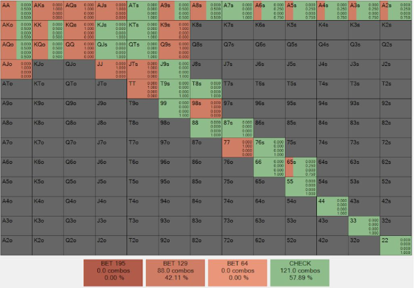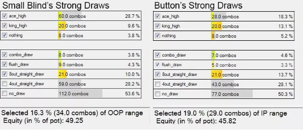 为了弄清楚为何PIOSolver在这里玩得这么激进,我们只需要问自己第一个问题——谁具有胜率优势?