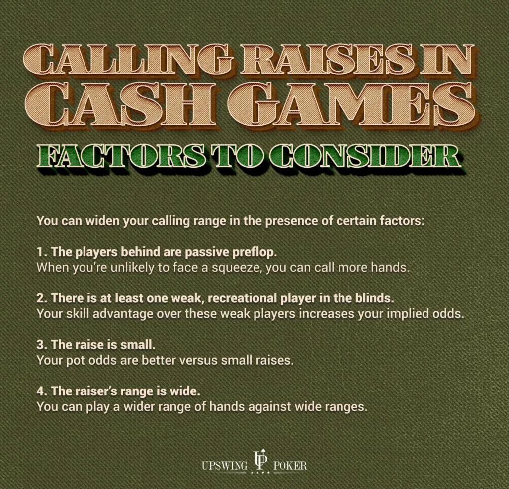上图概括的是玩常规桌在决定是否call加注时需要考虑的因素。
