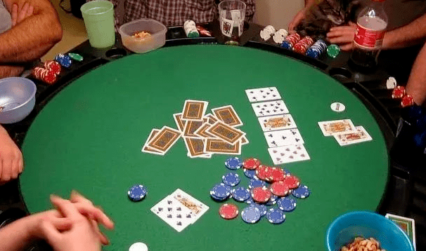 小盲玩家的底牌是4♠ 4♣,他认为河牌圈拿到的暗三条是坚果牌,结果被证明是个错误。大多数人可能认为他很不幸。毕竟,同花听牌难到不应该在转牌圈下注吗?