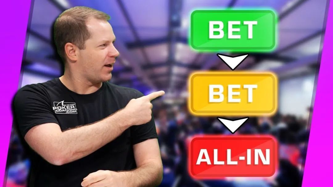 低于70%的下注,他们会因为已经投入了不少筹码而跟注,同时他们的赔率也不错。而高于100%底池的下注会令我们的手牌看起来太像诈唬。对手也许会想:“如果他想让我跟注,为什么他要打这么大?”这意味着我必须从翻牌开始规划河牌的下注尺度。
