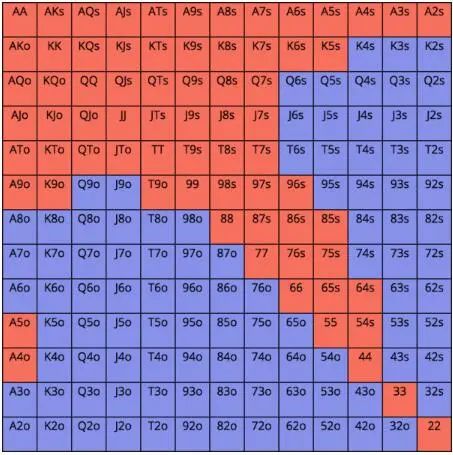 我们的范围如何随位置变化而变化是非常直观的——随着我们和率先加注者越接近按钮位置,我们就玩得越松。我们来看两个例子。
