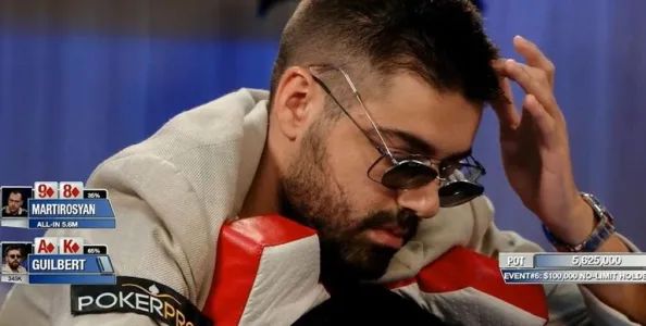 在Bedir弃牌后,Martirosian用8♦9♦在按钮位全下,Peters弃牌,Guilbert拿到了A♦K♦,但他在想了半分钟后决定弃牌。