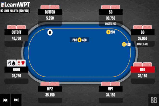 拿着6♠ 6♥,我们很可能对抗大多数对手的范围都有超过38%的胜率。我们对抗由77+、AJs+、KQs、AJo+、KQo组成的范围恰好有超过38%的胜率。