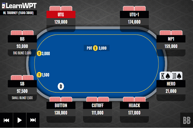 在这种场合,没有弃牌赢率和糟糕的位置是比对抗一个可能较宽的范围更重要的因素。