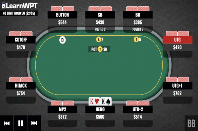 这手牌的一个关键因素是大盲玩家的筹码量。我们的对手在游戏开始时大约有60个大盲注。一般而言,普通牌手用60BB翻前全压的范围宽于他们用100BB或150BB全压的范围。