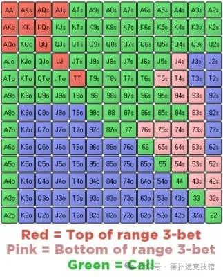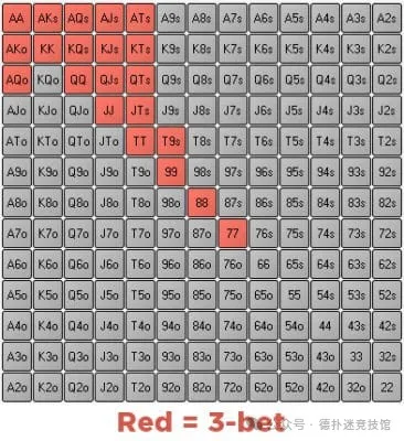 两极化3bet范围由我们继续游戏范围中的顶端牌和底端牌构成。以下是两个你应该使用两极化3bet范围的极常见场合。