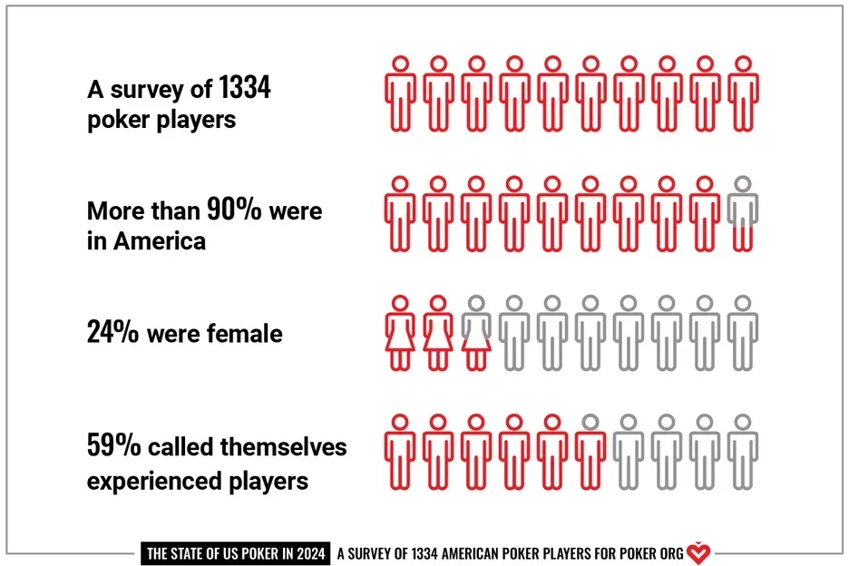 PokerOrg调查了全美近1300名玩家,其中24%为女性,59%为资深玩家。