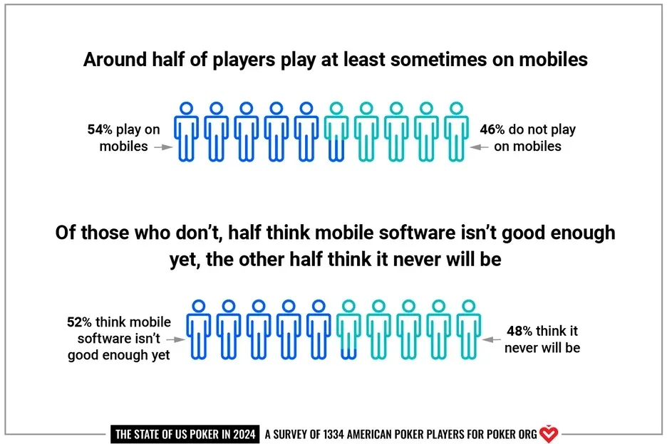 但在 46% 选择不在移动设备上玩牌的受访者中,约有一半认为现有的移动软件还不够好。另外48%的人呢?认为永远都不够好!