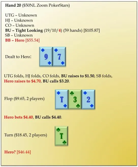1. 像口袋对子和T9s这样的较差成手牌。这些牌仍然有可能通过跟注而不是下注投入资金。