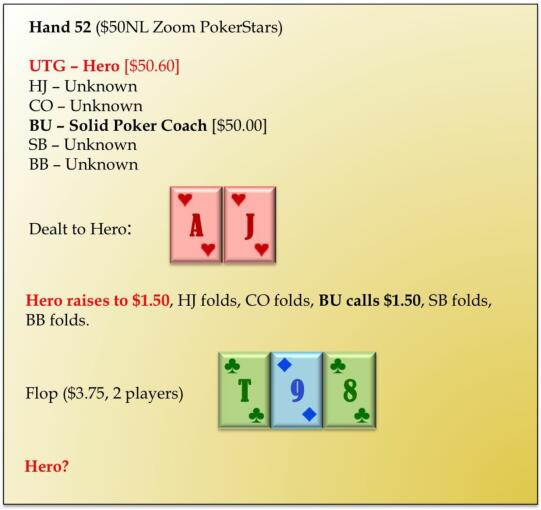 更好的做法是:在你评估以你的方式为你的牌投入资金对抗对手当时的疑似范围形势足够好之前别把任何情况称作cooler。现在我们来看看这手牌如何说明了正确定义这个术语的重要性。