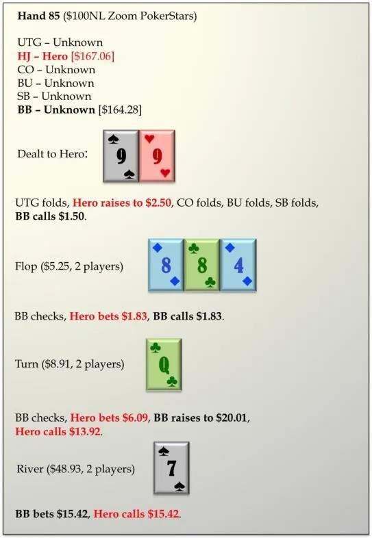 l 我在这里可以放弃很多牌,但99其实是一手相当好的跟注牌,因为它阻断了98s(好)。