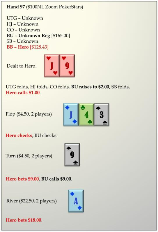 我们的价值下注范围现在缩小为:[43s,J9,44,33,As8s,As7s,As6s,As5s,As2s](22种组合)。