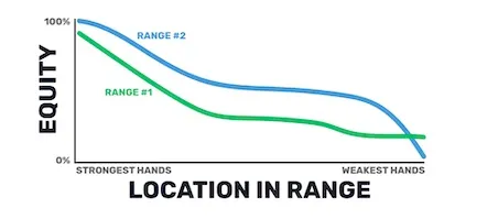 这是因为GTO策略不太基于一个范围的权益多少,而是基于权益如何分配。
