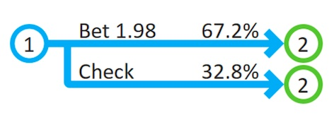 因为解算器大多数时候使用的是三分之一底池尺度,让我们重新设计博弈树,迫使解算器要么下注三分之一底池尺度要么过牌。