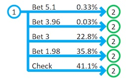 比如,让我们回到解算模型4:一个更为现实的多街解算。我们使用这个模型得出了一个针对河牌圈打法的实际权益分布,但我们并没有深入探索这个模型。
