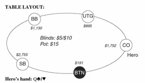 另外,大多数深码玩家并不知道如何很好地对抗短码玩家。他们会进行糟糕的跟注和加注从而让短码玩家获利。为了确保你不是其中的一员,本章节将会给出一个击败短码玩家的可靠框架。具体来说就是,为了很好地对抗他们,你必须知道他们如何游戏,因为正确的应对策略基本上和他们的策略会是一样的,除非在面对一个大底池时你也不得不考虑反向潜在赔率。