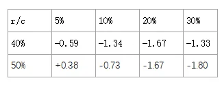我们会假设筹码量为$200,经过估算我们知道玩家A的恰当全压范围应该在5-50%,玩家B的恰当跟注范围在5-30%。此时我们就可以通过计算机和上面公式来进行计算。对于公式中使用的权益,我们利用计算机来计算r范围对抗c范围的权益。结果如下表: