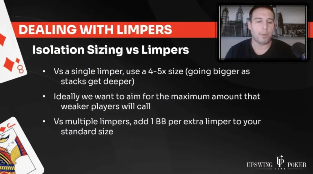 总的来说,就是试图找到他们会跟注的最大尺度。另外,翻牌前有一点弃牌率也不是坏事。如果他们会对我们的5倍加注弃牌,那也没关系。