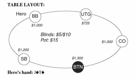 你的底牌:J♠️T♠️行动:前两名玩家弃牌。你加注到$35,小盲位弃牌。大盲位加注到$135,你跟注。此时底池$275。