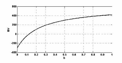 EV跟注={0.2/[0.2+(0.8)(b)]}(-$300)+{1-0.2/[0.2+(0.8)(b)]}($600)