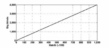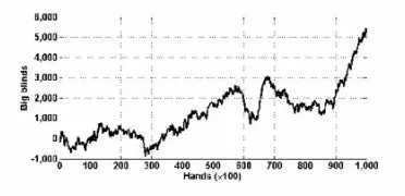 即使变数的期望值为0,但这并不意味着它将一直回归到0(被称为向平均值回归)。变数会从某一手牌开始与之前的手牌无关。这意味着,如果你在某一时刻期望值低于100个大盲注,那么这就是你变数的新“平均值”。回到你原来的期望值和低于预期的200个大盲注的可能性是完全一样的。