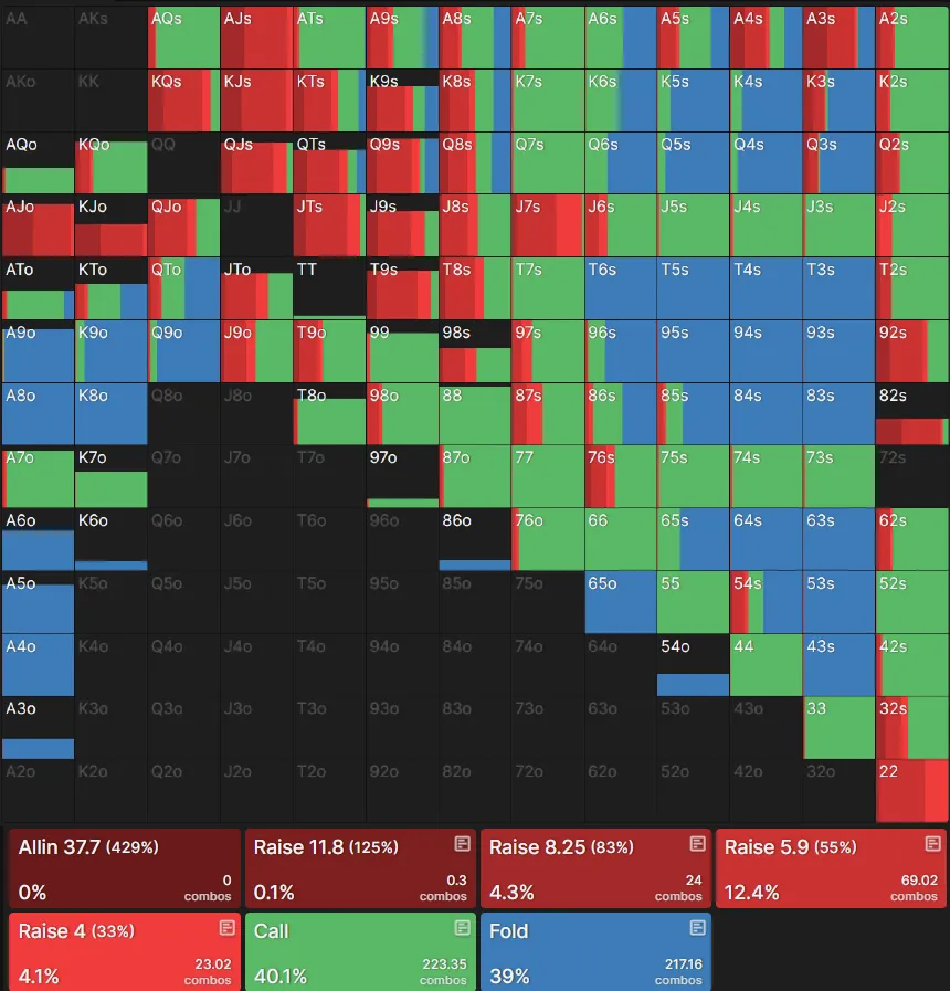 最后一个实验。我们再做一次,但不要限制UTG的范围,而是改变他们的下注频率。