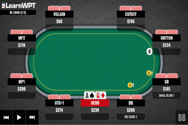 所以过牌是对抗一名未知对手的最好玩法。我们通常应该对大多数对手的全压弃牌。只有少数对手能够在河牌圈将QT这样的牌转变成诈唬,因此,当对手下注时,他通常有一个偏重于价值牌的范围。